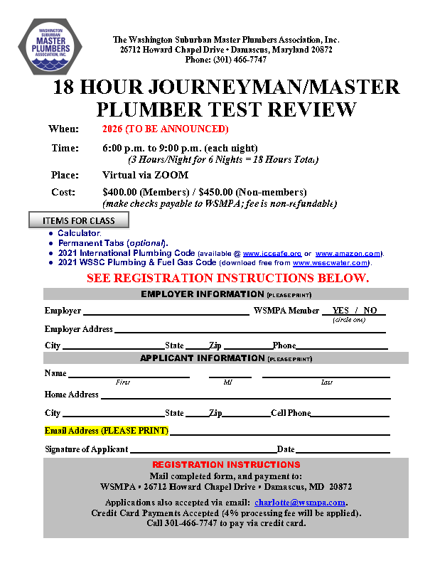 2026 TBA Plumber Review – Registration Form